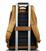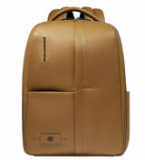 Zaino uomo giallo senape in pelle, porta pc e iPad® con sistema di sicurezza antifurto, portaocchiali, tasca per Piquadro Smart Tracker, protezioni antiurto e RFID
